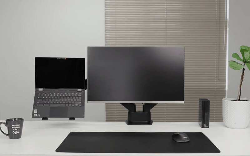 The VIVO Dual LCD Monitor Desk Mount Stand offers plenty of adjustability to improve work efficiency. It can support two 13-27-inch monitors up to 9.98 kg each concurrently. However, we recommend using it with a smaller screen and a larger one side by side. The monitors can be placed vertically or horizontally. You can pivot up and down and move them sideways.