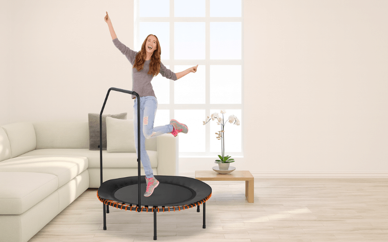 Trampolining, particularly on a mini-trampoline or rebounder, offers numerous health benefits:
