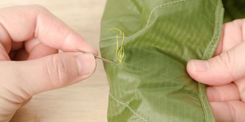 If the rip is relatively clean, use the needle and thread from the sewing kit and sew up the hole. Be sure to use a strong, durable thread, such as nylon or polyester, and double-stitch the edges to make the repair as strong as possible. The stitches should be short, neat, and close together.